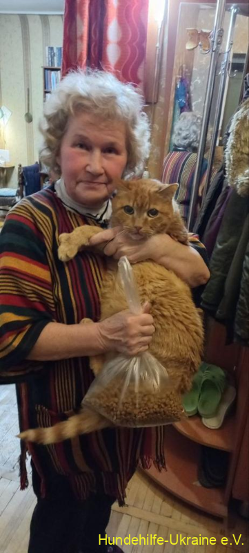 In der Zwischenzeit meldete sich eine Frau aus Charkiw bei uns und bat um Hilfe für die Tiere einer Hausgemeinschaft. Sie brauchten dringend Futter für ihre 15 Hunde und 40 Katzen. Wir benachrichtigten Maxim, vermittelten den telefonischen Kontakt. Misha brachte mit seinen Helfern Futter zur Hausgemeinschaft.